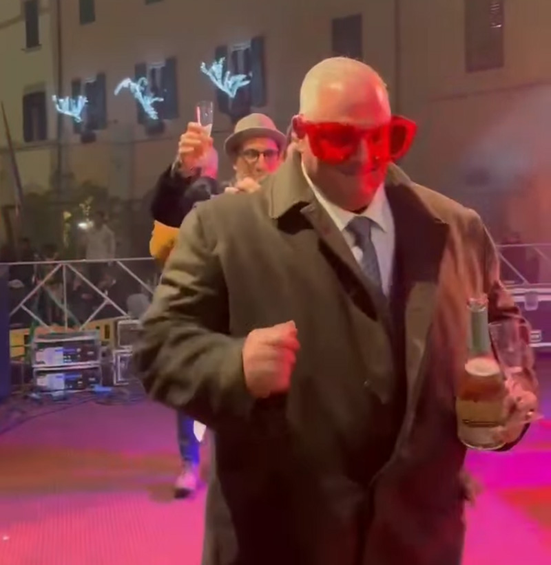 E il sindaco Antonfrancesco Vivarelli Colonna, insieme all’assessore alla cultura Luca Agresti, ha stappato la bottiglia di mezzanotte, indossando grandi occhiali rossi.