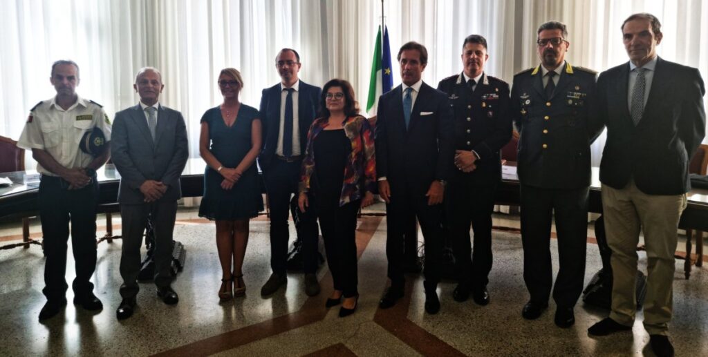 GROSSETO. Sviluppare un sistema di sicurezza che integri le iniziative pubbliche e private per garantire la sicurezza nelle città della Maremma. È questo il protocollo Mille occhi sulla città, sottoscritto dalla prefetta Paola Berardino con i sindaci dei Comuni di Grosseto, Antonfrancesco Vivarelli Colonna, di Castiglione della Pescaia, Elena Nappi e di Follonica, Andrea Benini. Il protocollo è stato firmato dal comandante provinciale dei carabinieri Giuseppe Adinolfi, il Questore Antonio Mannoni e il comandante provinciale della guardia di finanza Cesare Antuofermo insieme ai titolari degli istituti di vigilanza privata Rangers e Corpo vigili giurati di Grosseto.