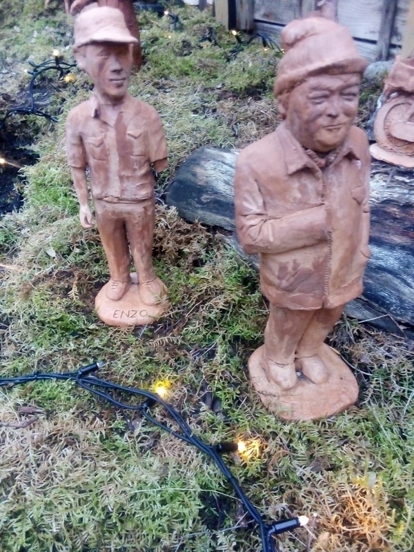 Gli autori di queste meraviglie, ovvero il popolo, non si nasconde, anzi cerca spazio. Allora vedi statuette con i nomi dei singoli abitanti con i volti molto rassomiglianti, ammiri il trattore nei campi, attività giornaliere, la vita insomma. Il vertice del genio, della pazienza e dell’operosità è dentro un fondo, lungo la via.
