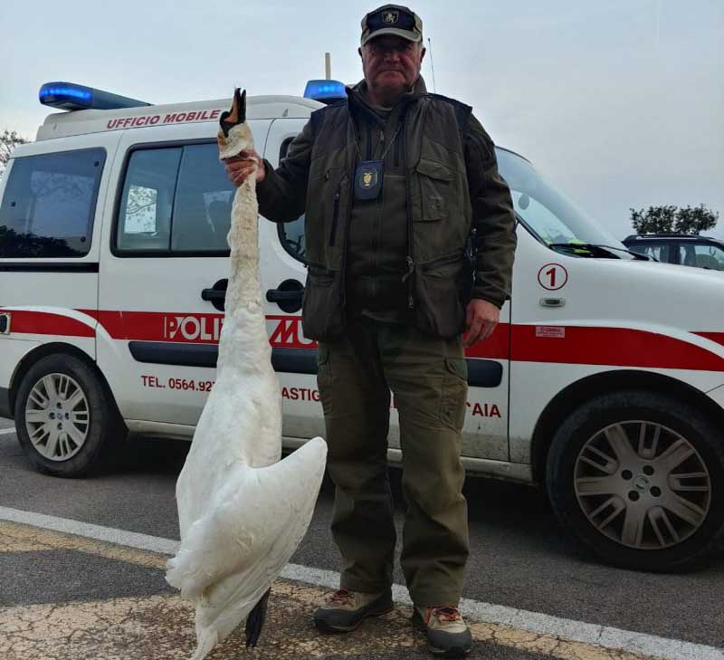 Avvisata la Regione Toscana e la dottoressa Giorgia Romeo, che ha disposto il trasporto del cigno reale presso l’ufficio di medicina di profilassi di Grosseto, per indagare sulle cause della morte.