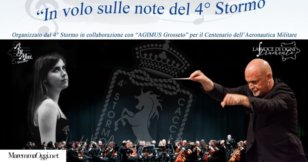 GROSSETO. “In volo sulle note del 4° Stormo” è l’evento musicale organizzato dal 4° Stormo in collaborazione con A.Gi.Mus Grosseto, per celebrare i 100 anni dell’Aeronautica Militare.