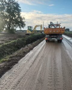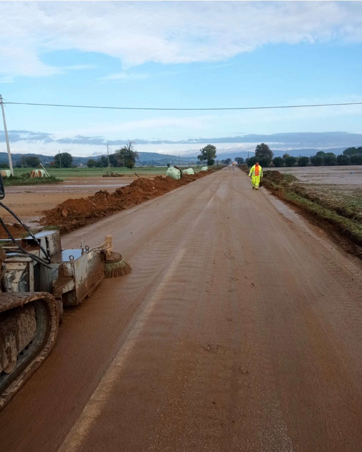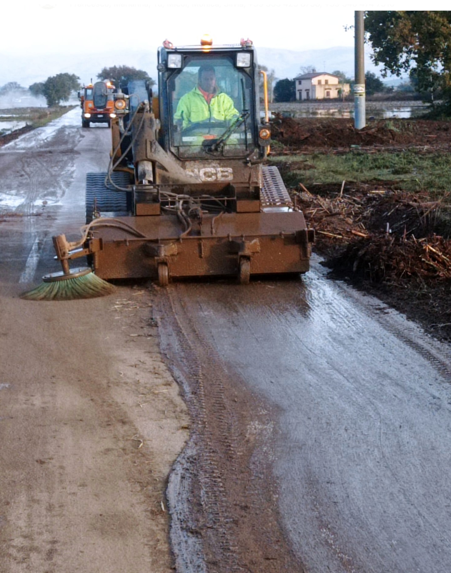 CASTIGLIONE DELLA PESCAIA. Dopo il violento nubifragio che si è abbattuto martedì 6 dicembre su Vetulonia e Buriano, gli operai della Provincia sono al lavoro da questa mattina, giovedì 8 dicembre, per riaprire la strada provinciale di Macchiascandona, tuttora chiusa al traffico.