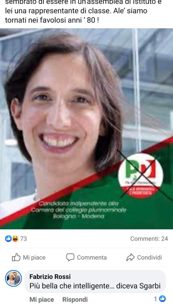 Ma c’è anche chi, del silenzio non sa che farsene e poche ore dopo le scuse (a tanti sembrate poco convinte) del sindaco, ci mette il carico da 90: il parlamentare di Fratelli d’Italia Fabrizio Rossi, che definisce la Schlein «Più bella che intelligente». Battuta datata, che ormai fa ridere davvero poco.