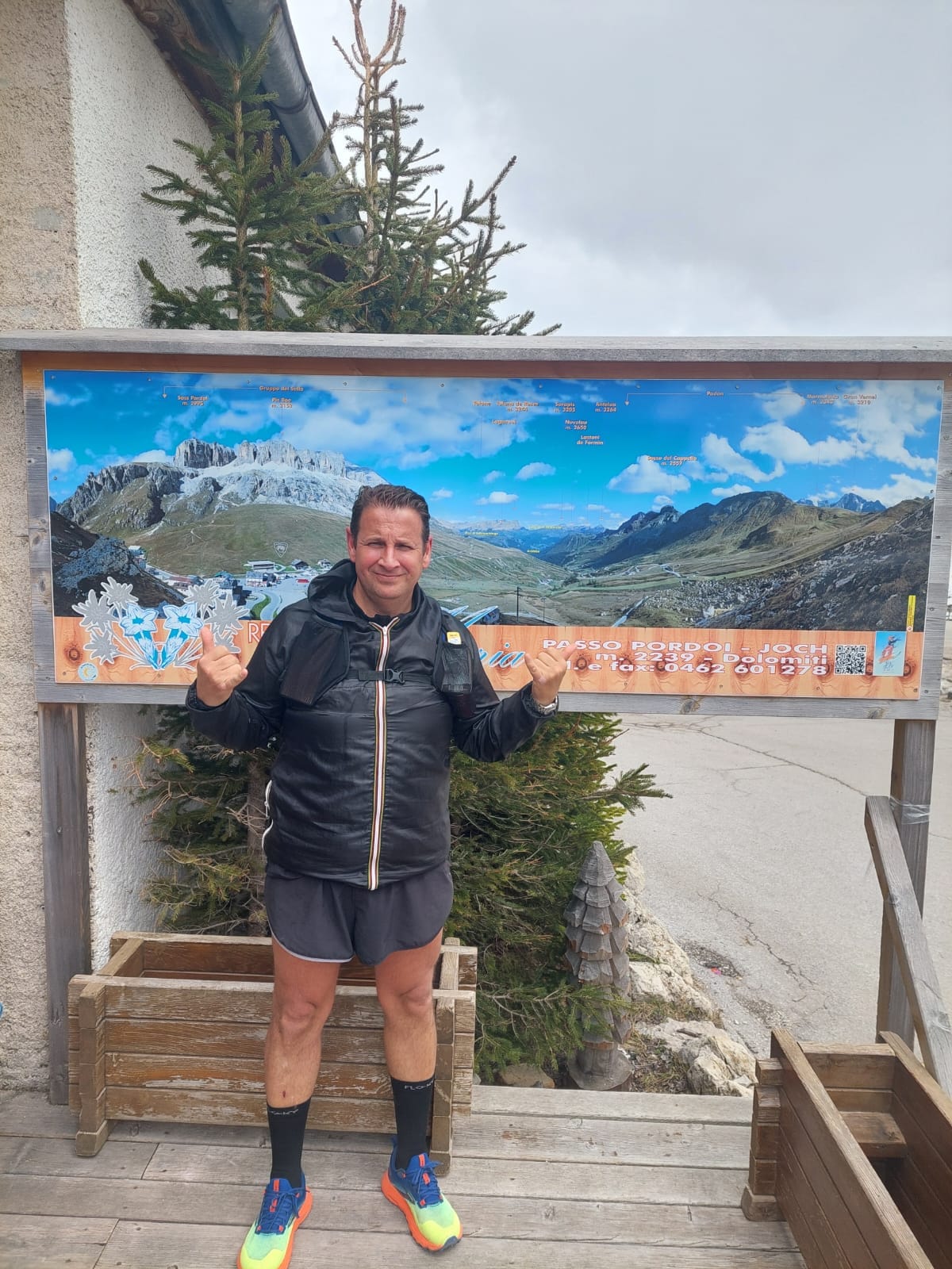 In poco meno di nove ore Olaf Peruzzi ha coperto la distanza di 58 chilometri toccando il Passo Sella (2218 mt), il Passo Gardena (2136 mt), il Passo Campolongo (1875 mt) e Pordoi (2239 mt) dove è arrivato alle 14,30 chiudendo un cerchio perfetto con un dislivello positivo di 3450 metri ed uno negativo 3440.