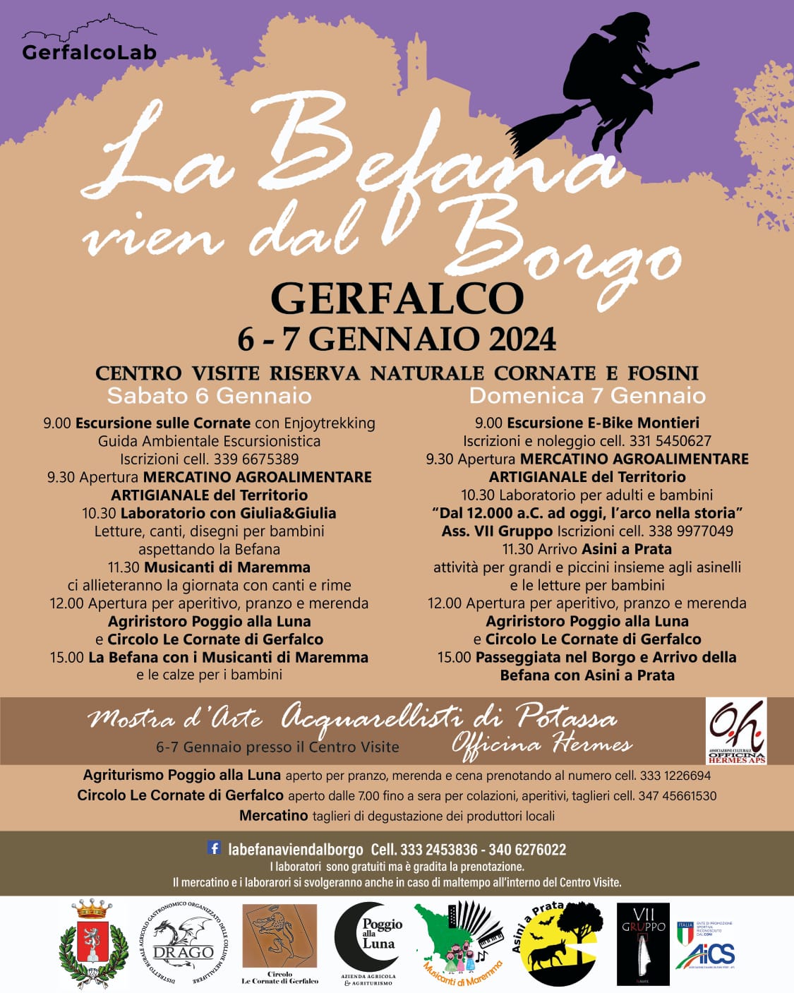 Venerdì 6 e Sabato 7 Gennaio Gerfalco, aprirà le porte del Centro visite della riserva naturale di Cornate e Fosini. Ospiterà il mercatino agroalimentare dove tutti potranno assaggiare le le eccellenze locali. Saranno ospiti anche piccoli artigiani locali con le loro proposte creative.