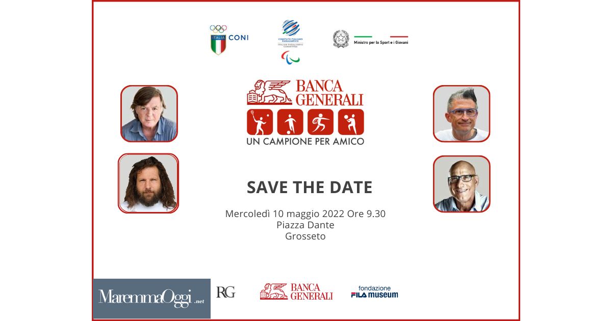GROSSETO. Torna “Banca Generali un campione per amico”, la più importante e longeva manifestazione sportiva-educativo. infatti il 10 maggio dalle 9.30 piazza Dante si trasformerà in una palestra a cielo aperto, grazie all’aiuto e al sostegno delle autorità locali. Gli atleti Adriano Panatta, Andrea Lucchetta, Ciccio Graziani e Martín Leandro Castrogiovanni insegneranno ai bambini delle scuole primarie e secondarie di primo grado cosa vuol dire vivere lo sport attraverso l’integrazione, il rispetto delle diversità, la determinazione e la passione nell’inseguire i propri sogni e i segreti per diventare dei campioni.