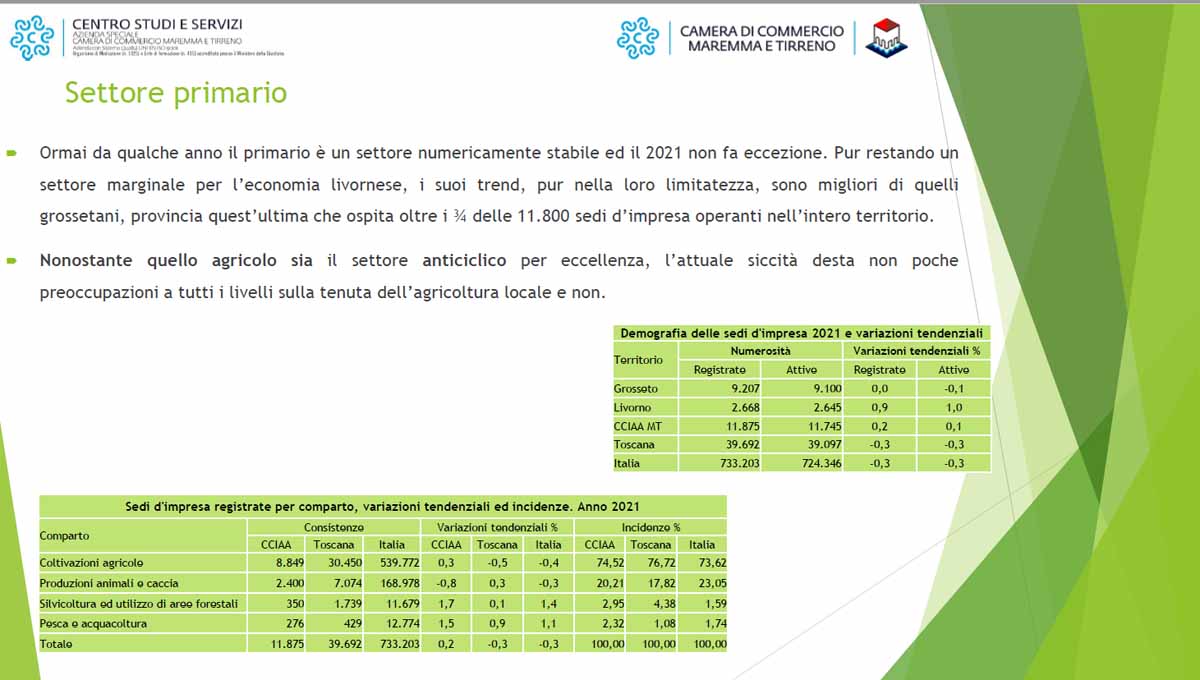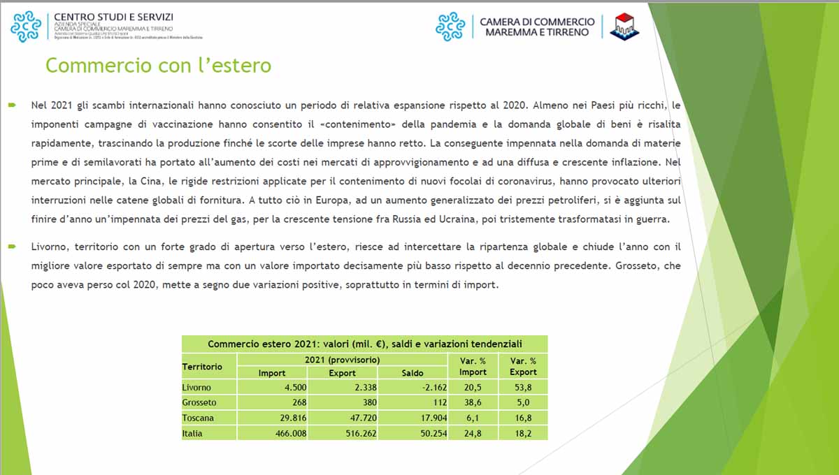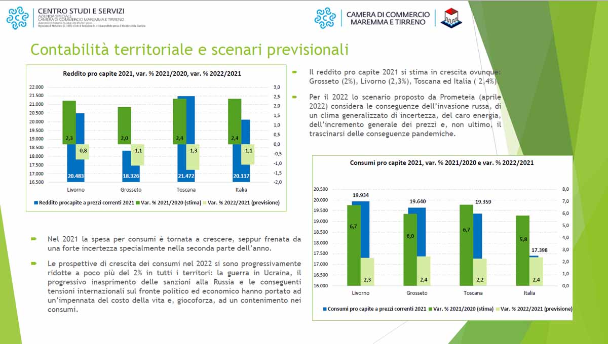GROSSETO. La Camera di Commercio della Maremma e del Tirreno ha presentato il rapporto sull’economia delle due aree (Grosseto e Livorno). Un’economia che è ancora fortemente condizionata dagli effetti della pandemia e della guerra in Ucraina.