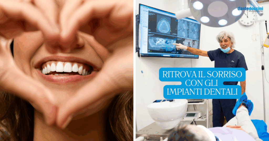 Lo dimostra bene il caso della paziente a cui abbiamo fatto cenno, giunta allo studio dentistico del Dottor Dante Doccini su consiglio di altri pazienti soddisfatti. La donna si è rivolta al dottor Doccini con il desiderio di ritrovare un sorriso sano e, dopo un’attenta e scrupolosa valutazione, è stata sottoposta a un intervento di implantologia a carico immediato, svolto con successo e senza alcuna complicazione.