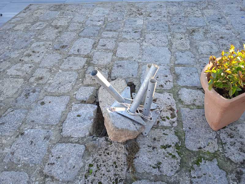 Gli ombrelloni del piazzale sono stati sradicati da terra e uno è volato fin sul bastione d’Arcos, a parecchia distanza dalla sede.