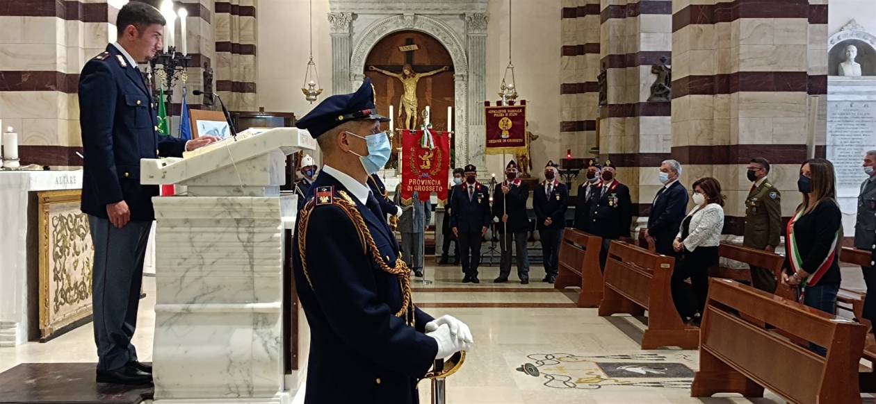 Alle ore 10, nella Cattedrale di Grosseto si è svolta la Santa Messa alle presenza di tutte le massime autorità civili e religiose e con la partecipazione della Corale Puccini. Alla fine della funzione il questore Ponziani, prossimo alla pensione, ha rivolto un saluto a tutti gli intervenuti.