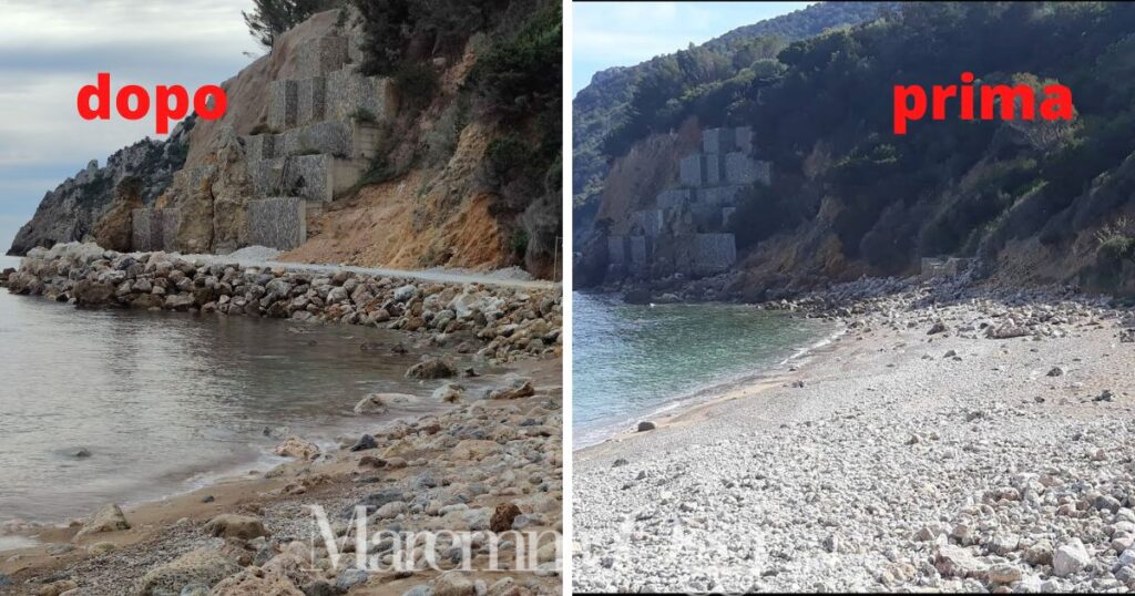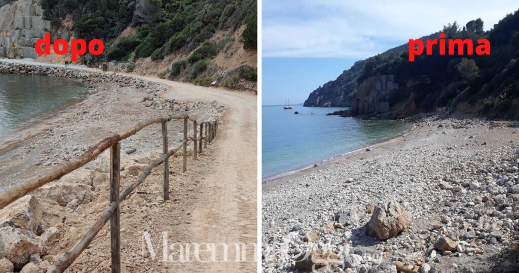 «In ogni sua parte la spiaggia, infatti, è stata completamente mangiata dalla strada di cantiere, a partire dalla piccola scalinata per l’accesso, uno dei tanti sentieri e scalinate che tipicizzano e caratterizzano le nostre spiagge dell’Argentario, con quell’immenso profumo di macchia mediterranea».