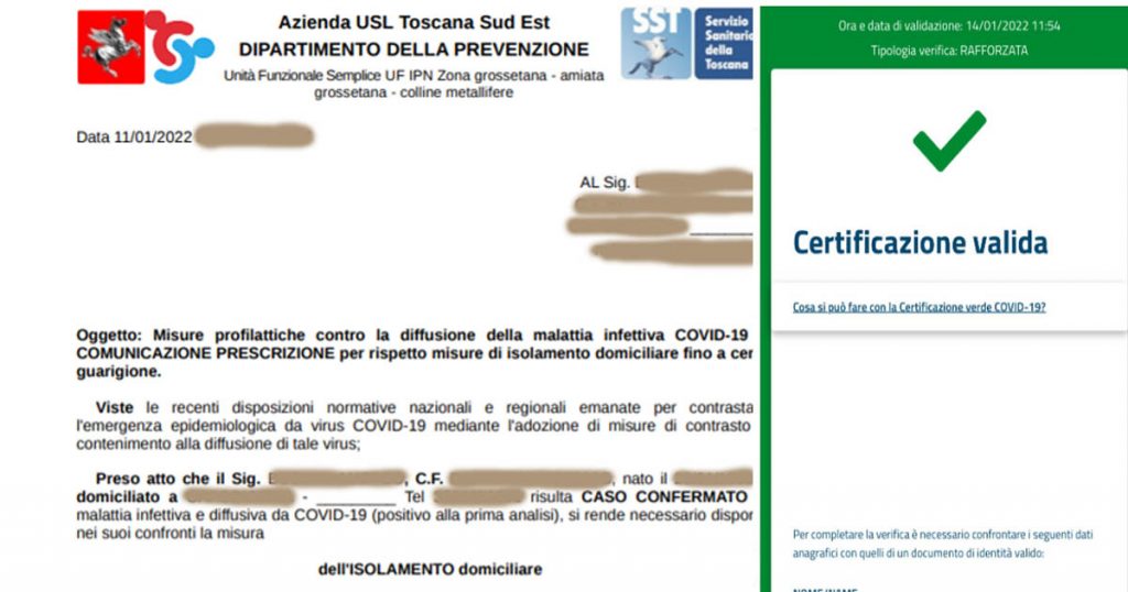 «È vero, ho un documento ufficiale dell’Asl che mi dice di stare in isolamento – ci dice – e, sono sincero, l’isolamento l’avrei fatto anche senza l’ordine dell’Asl. Mica sono matto. Però il mio green pass non è stato disattivato e, se volessi fare il furbo, sono totalmente asintomatico, potrei fregarmene e fare la stessa vita di sempre. Nei locali e al lavoro mica ti chiedono il documento dell’Asl, ti chiedono il green pass. E il mio è… verde, anche rafforzato, ho fatto anche la terza dose di vaccino, infatti sono del tutto asintomatico. Ma contagioso».