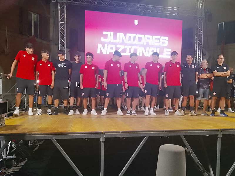 La sera di venerdì 29 piazza Dante si è vestita di biancorosso per applaudire la presentazione di tutto l’organico sportivo del sodalizio.
