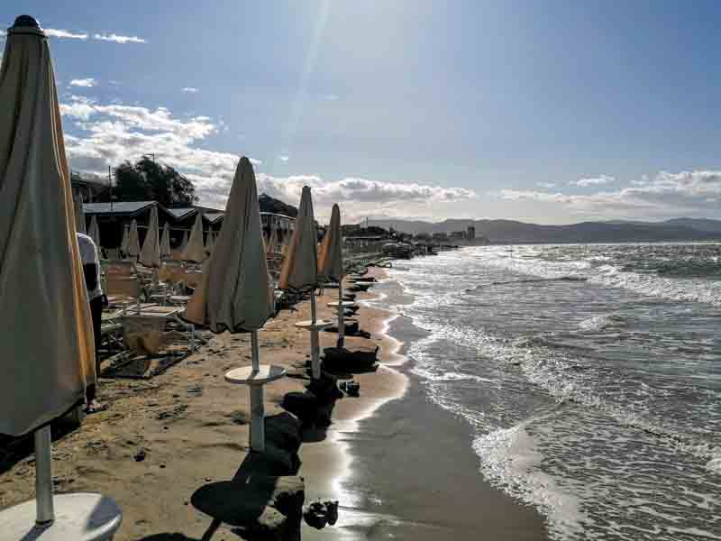 La stagione, comunque, va avanti. Almeno per qualche altra settimana. Intorno alle 11 in zona Castiglione della Pescaia il mare risulta ancora mosso ma non sembra ci siano stati danni.