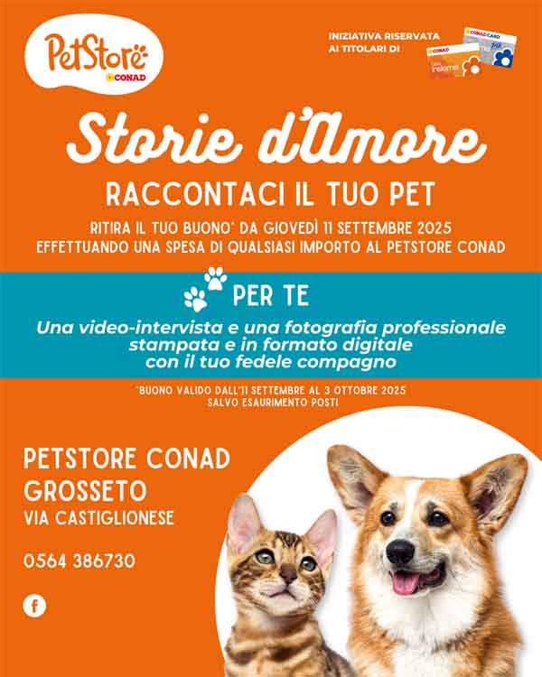 GROSSETO. Da giovedì 11 settembre al via il secondo — e ultimo — appuntamento del 2025 di Storie d’Amore, l’iniziativa lanciata dal PetStore Conad per accendere i riflettori sul profondo legame che unisce padroni e animali domestici, mandando in onda le loro storie d’amore sui piccoli e grandi schermi.