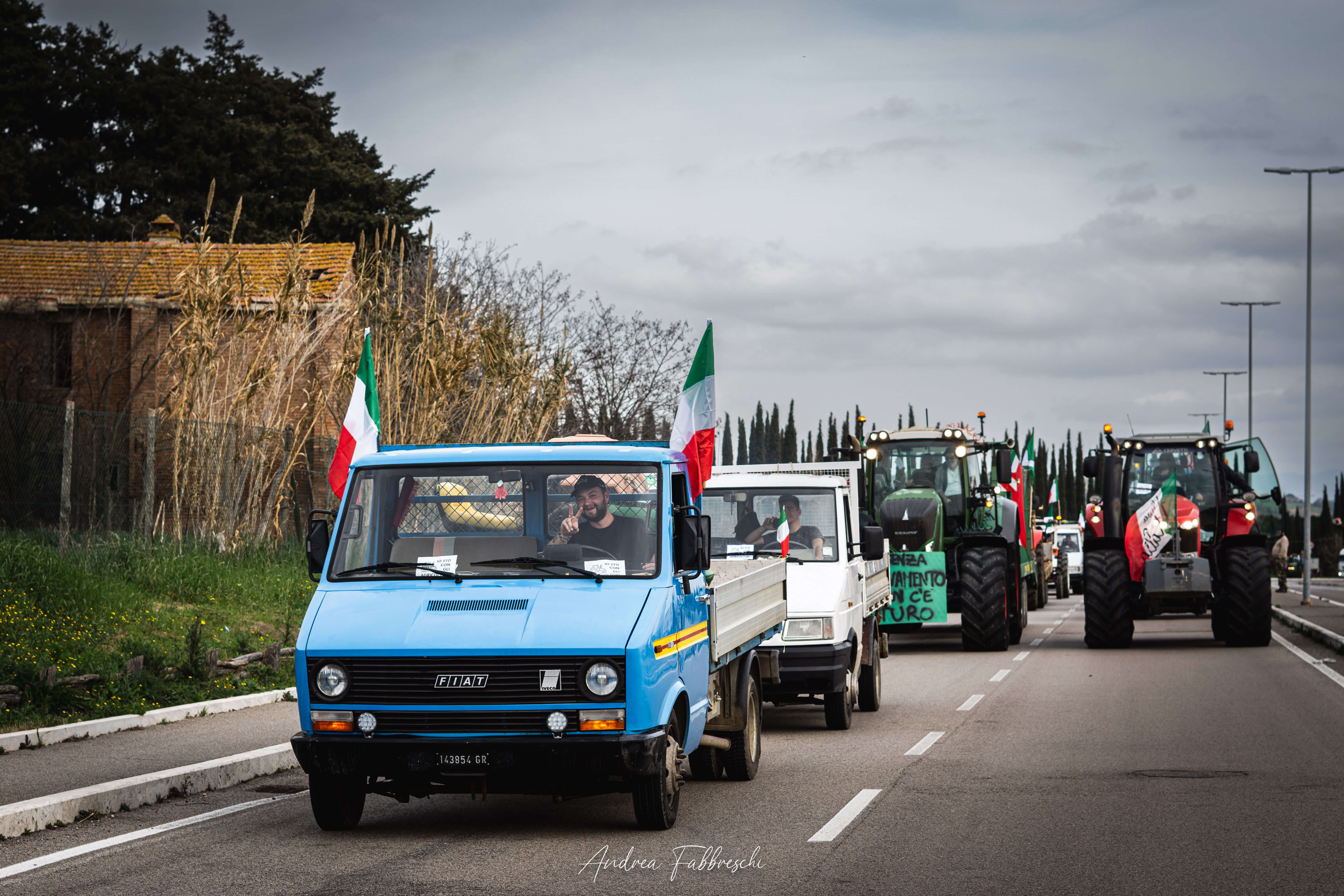 Un corteo di 250 mezzi (trattori e altre macchine agricole e non) è partito questa mattina intorno alle ore 9.30 da Rispescia e ha raggiunto a lentissima velocità, bloccando l’Aurelia, il parcheggio del centro commerciale Maremà poco prima delle 14, stanziandosi in uno spiazzo sterrato adiacente, poco oltre la farmacia comunale.