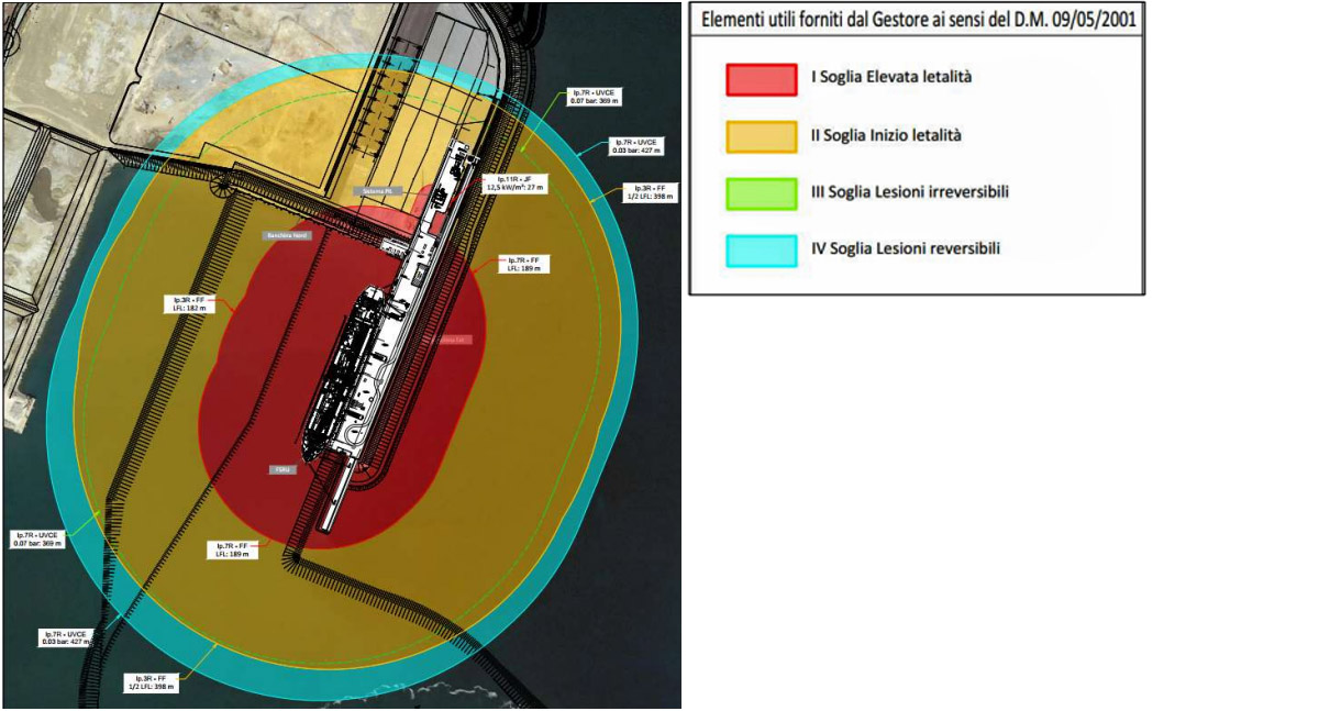 Va chiarito ancora che nel caso specifico, sulla base dell’analisi di rischio relativa all’installazione ed esercizio del rigassificatore, gli effetti stimati di un eventuale scenario incidentale non interessano aree del Comune di Piombino esterne al porto.