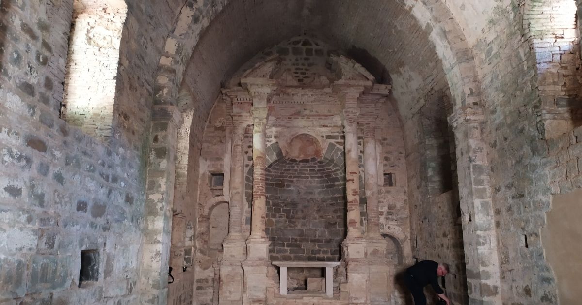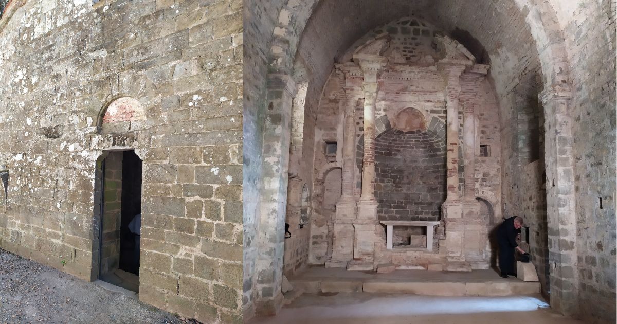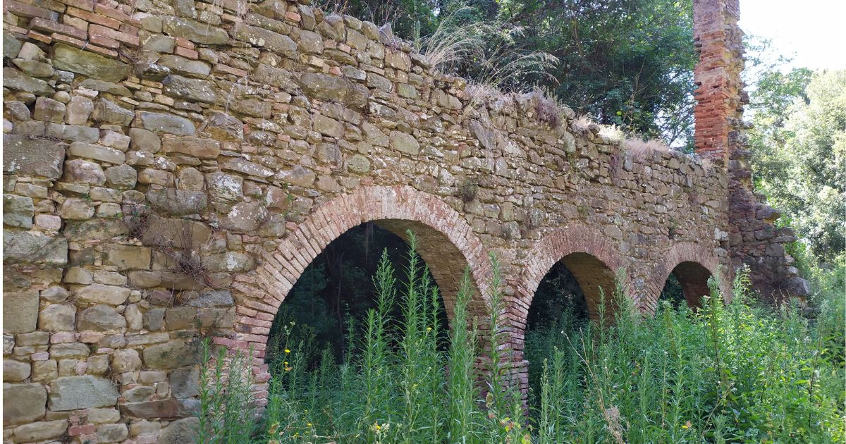 Il percorso è ben segnalato e attraversa il bosco di sughere monumentali, portando ai ruderi della chiesa romanica e dei resti della torre campanaria. Si può ammirare anche un tratto del vecchio acquedotto settecentesco.
