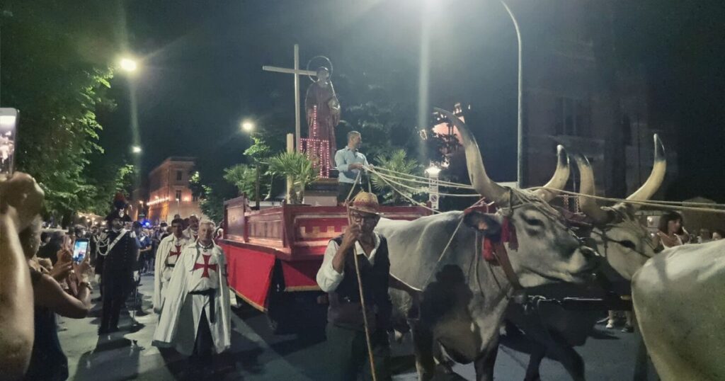 In un’atmosfera che questo anno riprende i suoi tradizionali colori, la città si ritrova nel suo centro storico a fare di nuovo spazio ai butteri a cavallo che accompagnano le reliquie e la statua del Santo issata su di un carro trainato da due coppie di buoi.