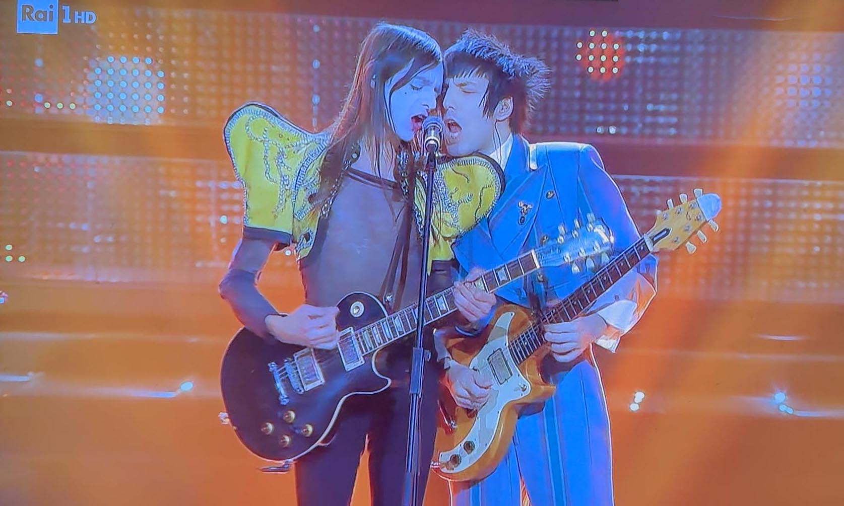 Un menestrello dolcissimo sul palco dell’Ariston, Lucio Corsi, che piace alla sala stampa e al pubblico. Con una melodia intensa e vera.