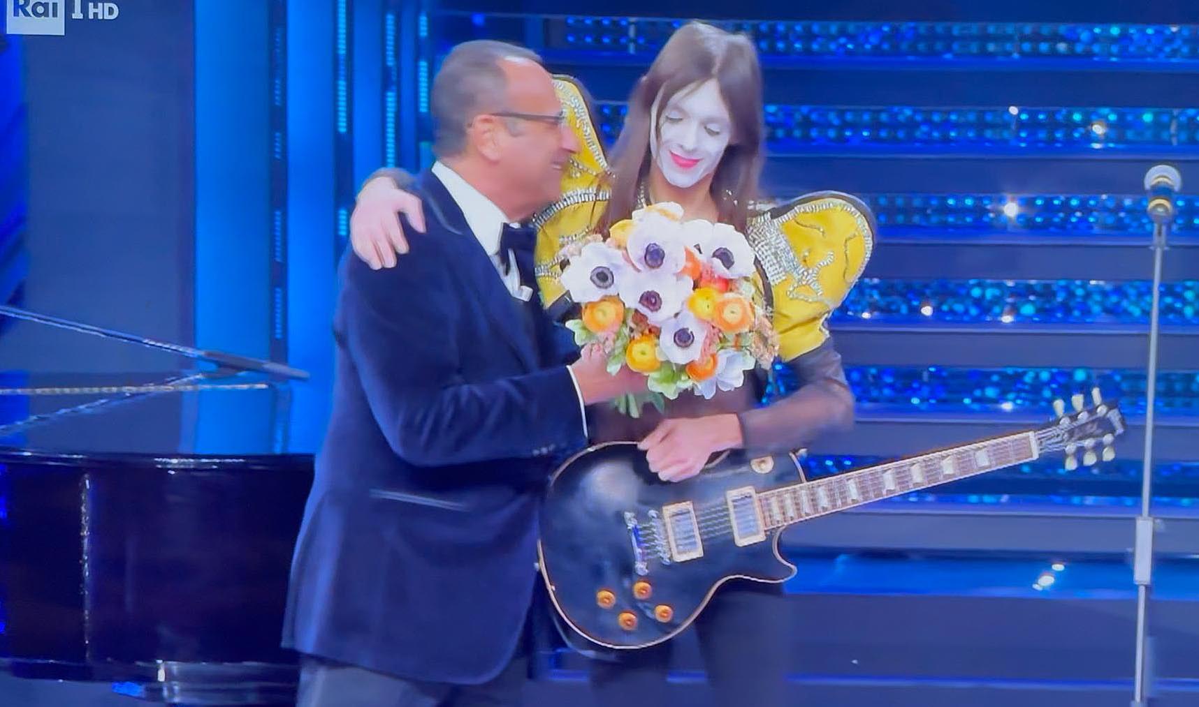 Maglietta nera trasparente, coprispalle giallo, volto dipinto di bianco: Corsi si piazza subito tra i primi cinque, alla fine della puntata iniziale del Festival di Sanremo. Insieme a lui, Simone Cristicchi, amiatino d’adozione.