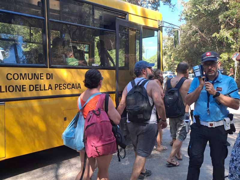Con le navette i turisti, su disposizione della prefettura, dovrebbero venir accompagnati al palazzetto dello sport dove si sta allestendo un punto di raccolta, con acqua e zone d’ombra.