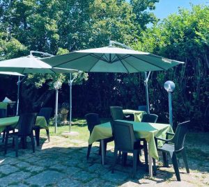 Oltre alle due sale interne ha un giardino esterno, ombreggiato da un grande castagno.
