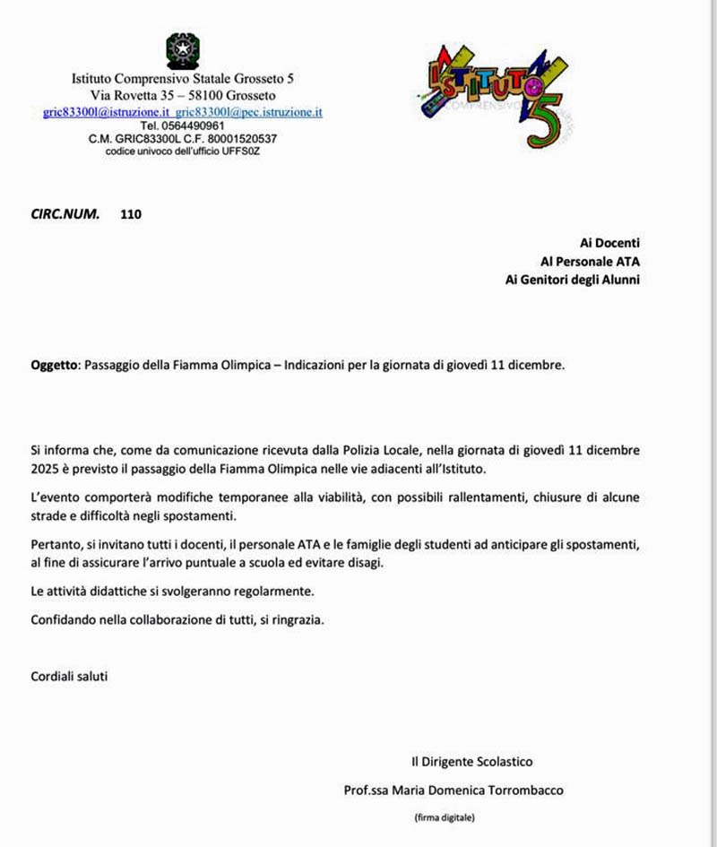 Scuola avvertita solo del passaggio della fiamma olimpica