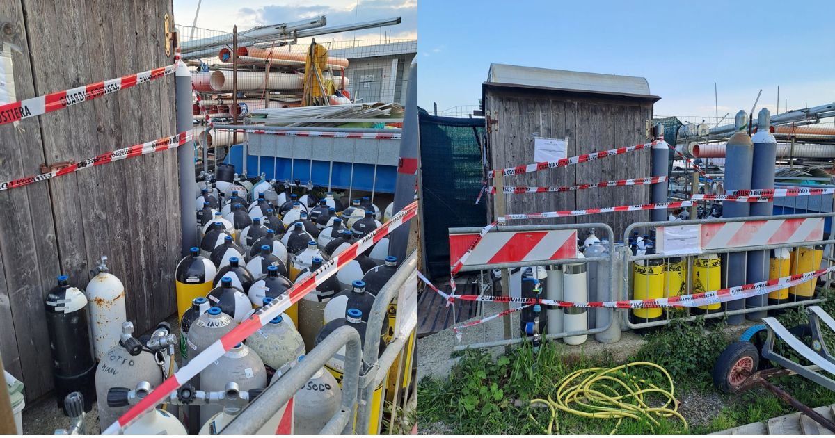 CASTIGLIONE DELLA PESCAIA. Sequestro penale ad un deposito di bombole di un diving a Castiglione della Pescaia: a mettere i sigilli la guardia costiera.