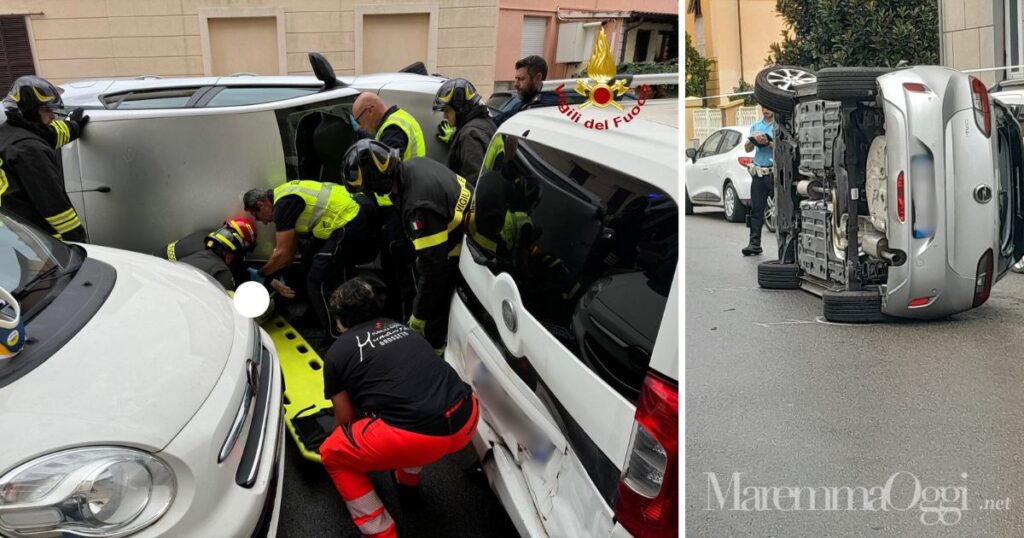 GROSSETO. Un’auto si è ribaltata sul fianco destro in via Aquileia oggi, giovedì 17 ottobre, alle 15.50, alla guida c’era una donna di 86 anni. I vigili del fuoco hanno estratto l’anziana creando un buco nel parabrezza anteriore.