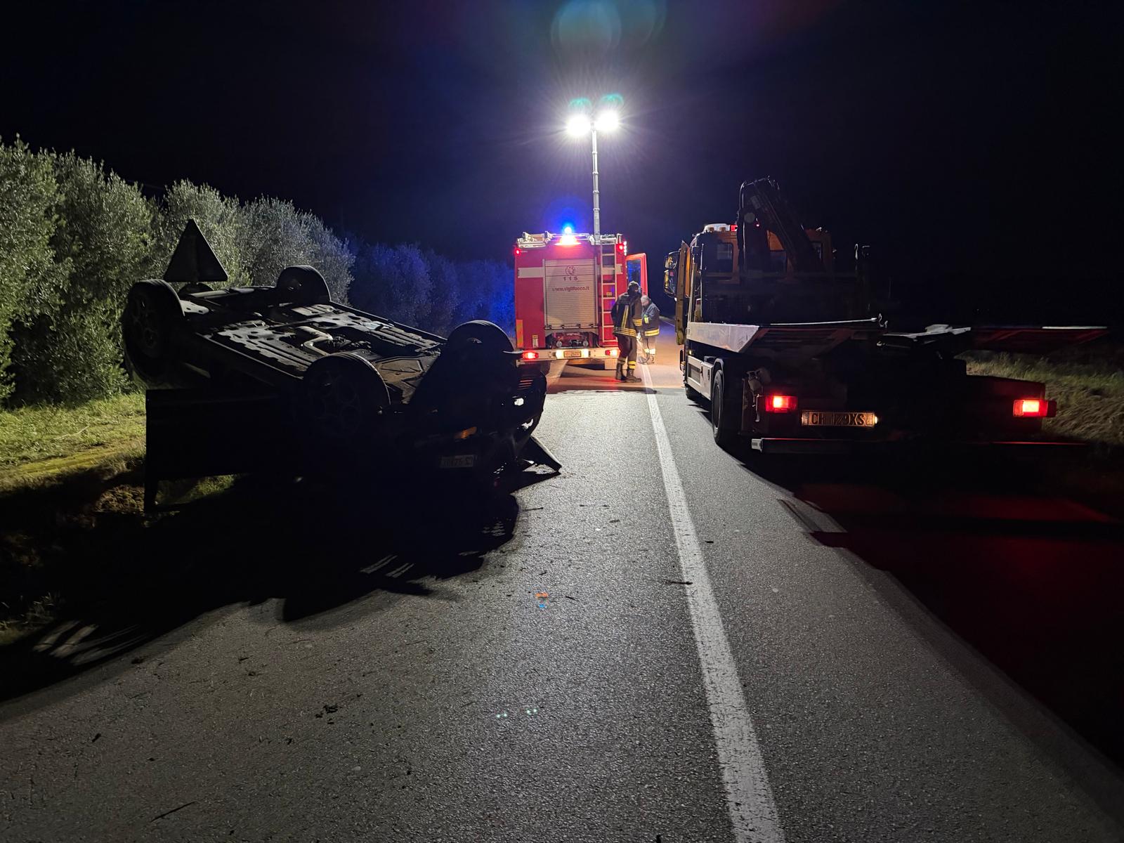 MARSILIANA. Incidente nella notte tra sabato 29 e domenica 30 novembre sulla Maremmana in direzione Marsiliana, poco dopo Polverosa. Intorno a mezzanotte, un’Alfa Romeo Stelvio si è ribaltata sulla strada: alla guida c’era un uomo che, dopo l’urto, è stato soccorso e portato in ospedale. Le sue condizioni non sarebbero gravi.