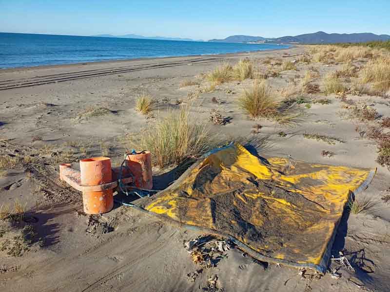 MARINA DI GROSSETO. La spiaggia e la duna piene di rifiuti: plastica, polistirolo, gomme. Le mareggiate e l’inciviltà umana stanno deturpando un ambiente naturale, unico, meraviglioso. Succede a Marina di Grosseto, ma la situazione non è molto diversa in Feniglia o davanti all’oasi di Burano dove, mancando il riparo dell’Argentario, il mare deposita sulla spiaggia di tutto.
