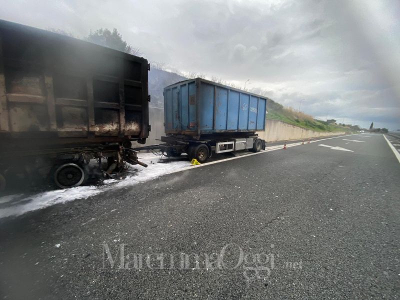 Il mezzo, un autoarticolato condotto da un autista russo, si trovava poco prima dello svincolo per Civitella Paganico quando il conducente ha notato del fumo provenire dal veicolo.
