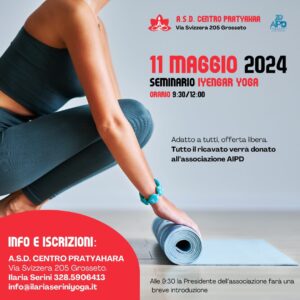 Per questo Ilaria Serini, insegnante di Iyengar Yoga e presidente dell’Asd Pratyahara in via Svizzera, ha deciso di dedicare una serie di seminari aperti a tutti per raccogliere fondi da destinare a varie associazioni.