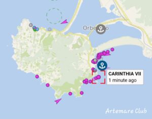 Domenica 27 luglio, davanti a Porto Ercole, si è fermato alla fonda il Carinthia VII, subito immortalato da Artemare club con il suo “yacht hunter” Marco Nieto.