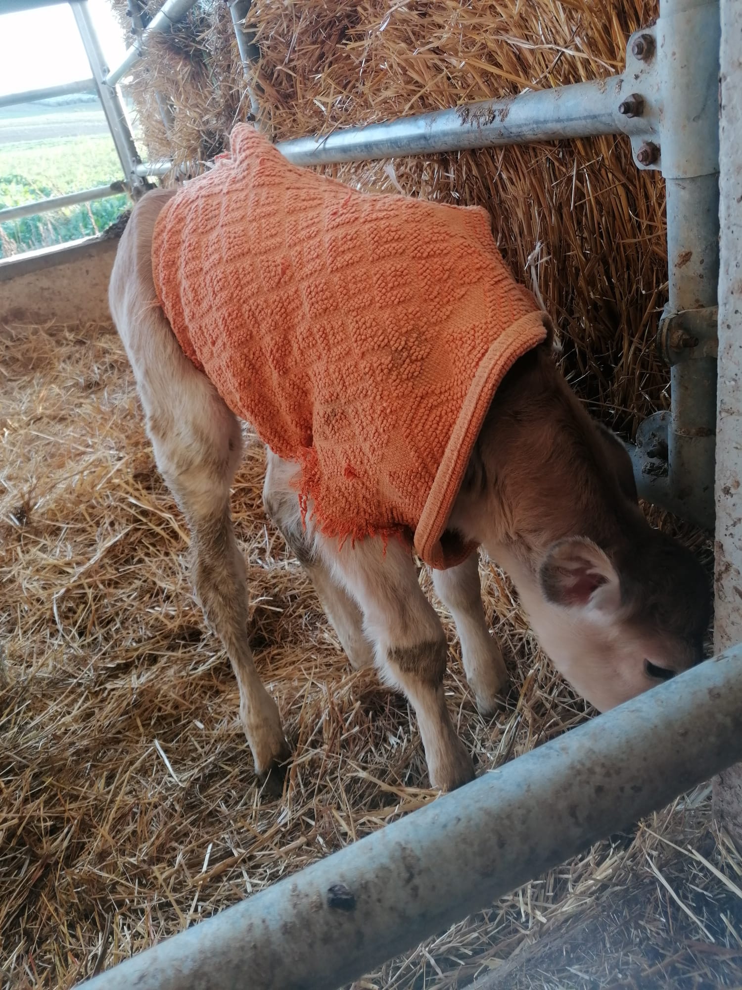 La stufetta però non basta. «Non riusciamo a scaldarla», dice Alessio. Così si è improvvisato sarto e, da un tappeto, ha ricavato un piccolo cappottino per la vitellina. «Ho fatto i fori per le zampe e gliel’ho infilato. Il tessuto è abbastanza spesso, dovrebbe bastare e sembra che lei ci stia bene», racconta.