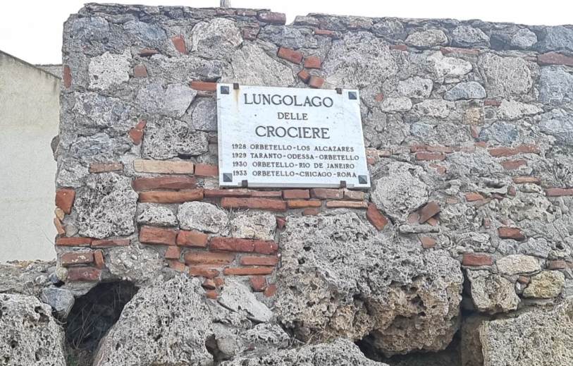 Una targa ricorda, poco più avanti le quattro imprese che furono compiute dagli aviatori che utilizzarono anche l’idroscalo intitolato ad Agostino Brunetta: la trasvolata del 1928 fino a Los Alcazares, quella dell’anno successivo da Taranto a Odessa con ammaraggio proprio a Orbetello, quella del 1930 a Rio de Janeiro e quella del 1933 a Chicago per poi tornare a Roma. Le crociere atlantiche furono guidate da Italo Balbo, allora ministro della recentemente costituita Aeronautica Militare.