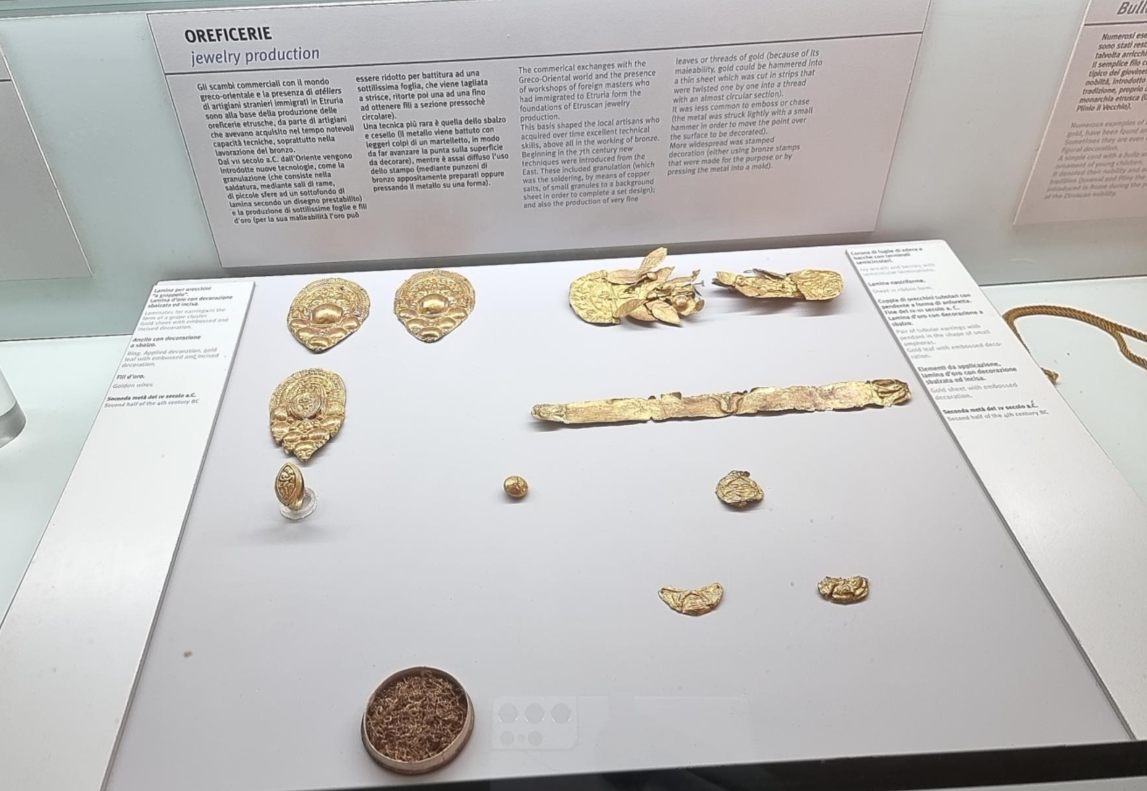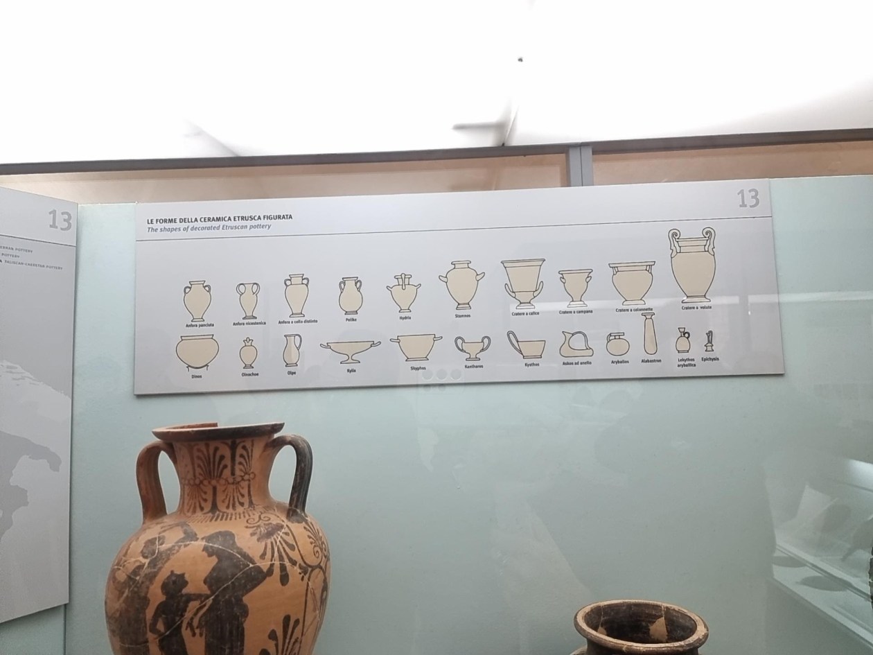 Non mancano gli oggetti dell’abbigliamento, le fibule e gli specchi, i gioielli e gli unguentari e le anfore del gruppo di Orbetello, rinvenute in mare e acquistate dal Comune nel 1957, attribuite al pittore di Micali o alla sua scuola.